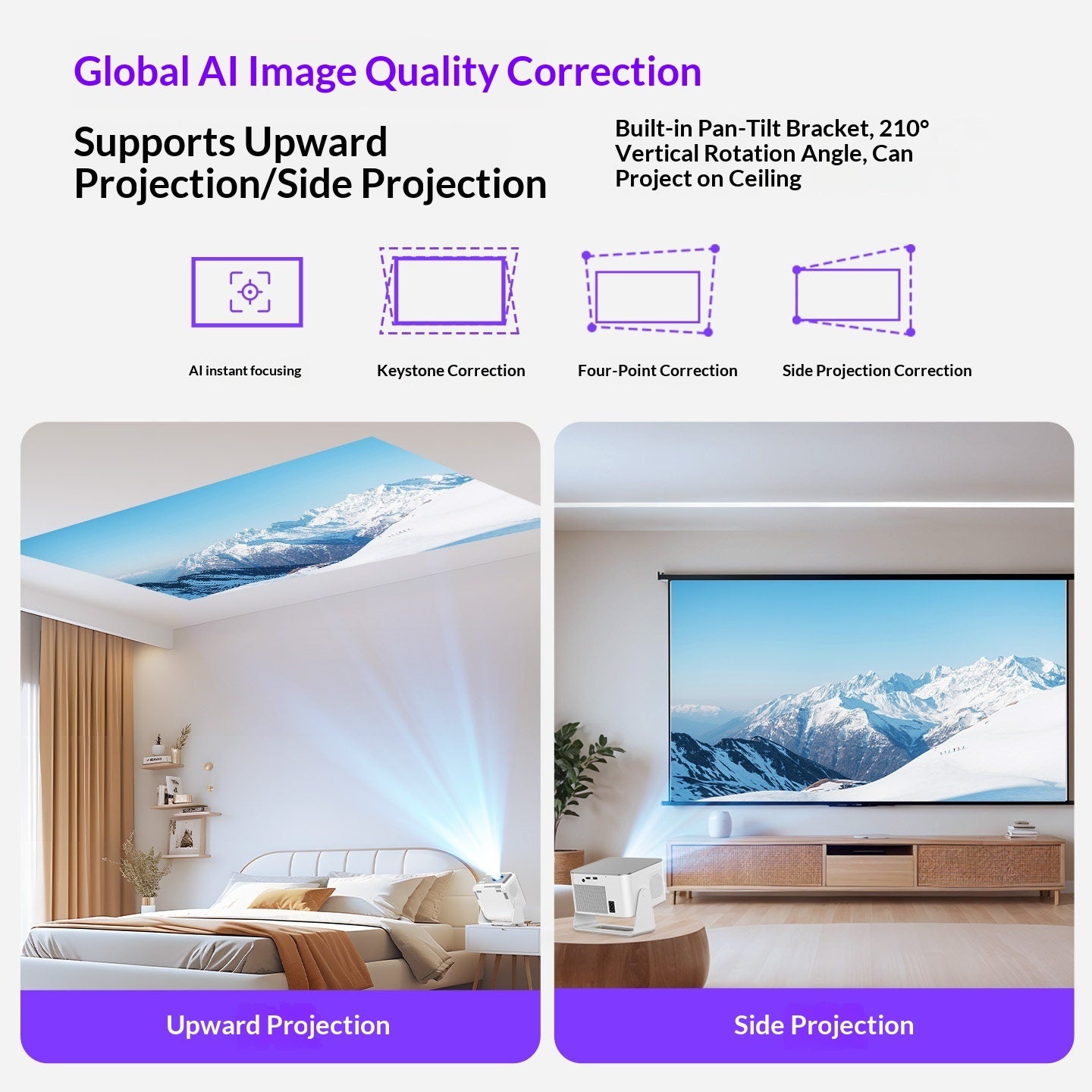 Features: Supports 8k, free screen mirroring, supports AI Purpose: Projection